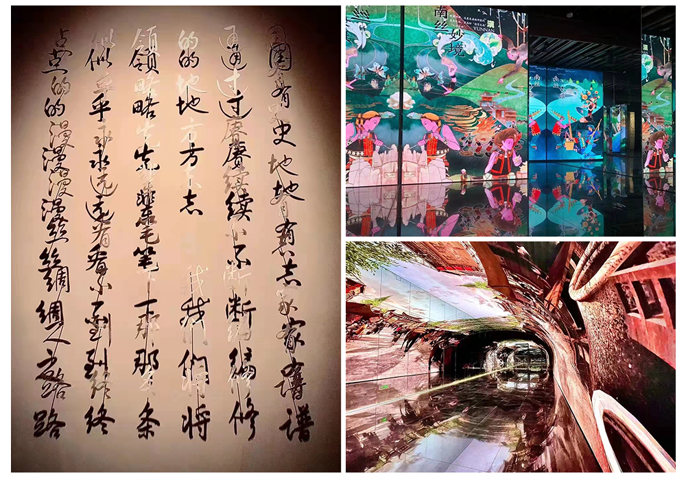 艾维创结合各展馆所需呈现的内容配合声、光、电、影等高科技多媒体技术,多维渲染,沉浸再现和交互,以颇具新时代艺术的表现方式,集中展示了从洛阳到成都到云南乃至南亚东南亚各国的方志文物、云南区域特色、历史文化特色、民族团结特色,加深观众对于南方丝绸之路古文明和文化的认知和理解,在这一方天地里,时间和空间将不再是阻碍,科技与历史碰撞,文明与艺术相融,将一个个充满丝路风华演绎万千的精神殿堂淋漓尽致的呈现在游客面前。